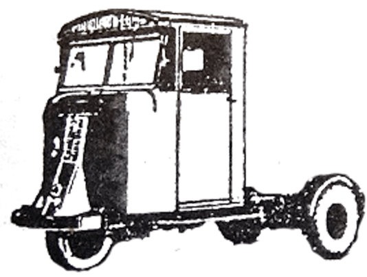 Electric horn, one headlight, two rubbolite sidelamps and taillamp.