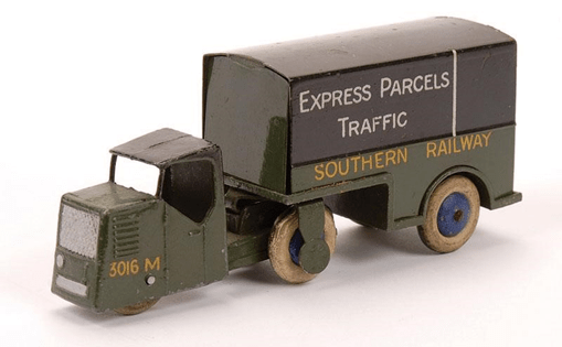 First introduced in 1935, the Karrier Cob was available with a number of trailer options and in a variety of liveries, it was also as part of a set that included four or five trailers.. Production stopped in 1941 but began again after the war. The original price was three shillings and one penny (16p).