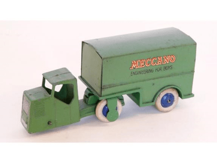 The Box Van Trailer (33d) was available in four liveries: Green, Green with ‘Meccano Engineering for Boys’ decal, Green with ‘Hornby Trains British and Guaranteed’ decal and Blue with ‘Hornby Trains British and Guaranteed’ decal.