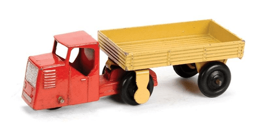 The Dust Wagon Trailer (33e) was a tinplate insert supplied with a Dropside Trailer (33c) and was available in three liveries: Green insert (usually with a grey trailer), Light Blue insert (usually supplied with a yellow trailer) and Yellow insert (usually supplied with a blue trailer).