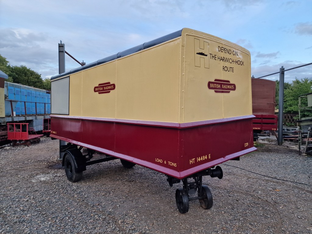 Former 25ft 8T trailer, believed to be Ex RAF, recovered from a farm in Melton Mowbray, now carries BR Crimson livery