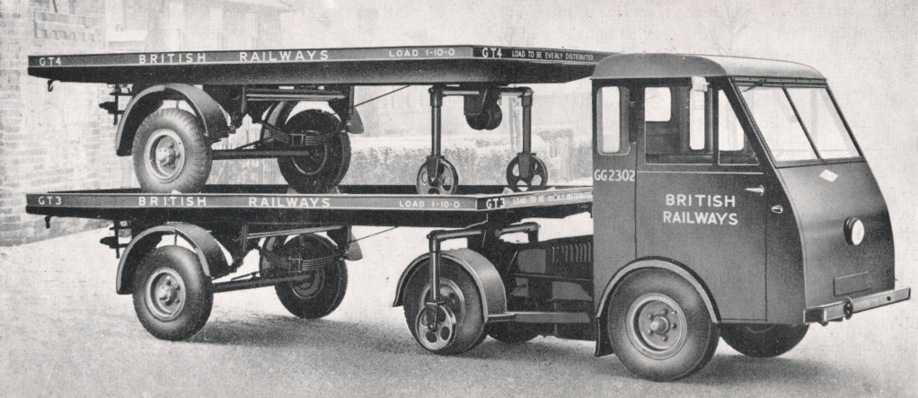 The Karrier Cob was designed by J. Shearman, road motor engineer for the London, Midland and Scottish Railway Company, and buily by Clayton & Co of Huddersfield from 1929. Like the Mechanical Horse the Cob was designed to operate in confined spaces and manoeuvre more easily in traffic. It was capable of pulling a three-ton load at 18 mph and restarting on a gradient of one in eight. Production tractors were powered by Jowett two-cylinder 7hp engines with chain-drive reduction gearing.