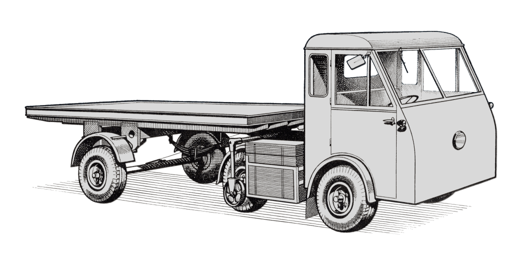 The Austin Crompton Parkinson Organisation introduced in 1951, a 2T articulated vehicle. Known as the M.E. 2T Electric Horse it was a battery driven vehicle equipped with the Scammell Automatic Coupling. Complete with all the mod cons of the time including Hydraulic brakes on all four wheels, a walkthrough cab and Rubber mudwings.