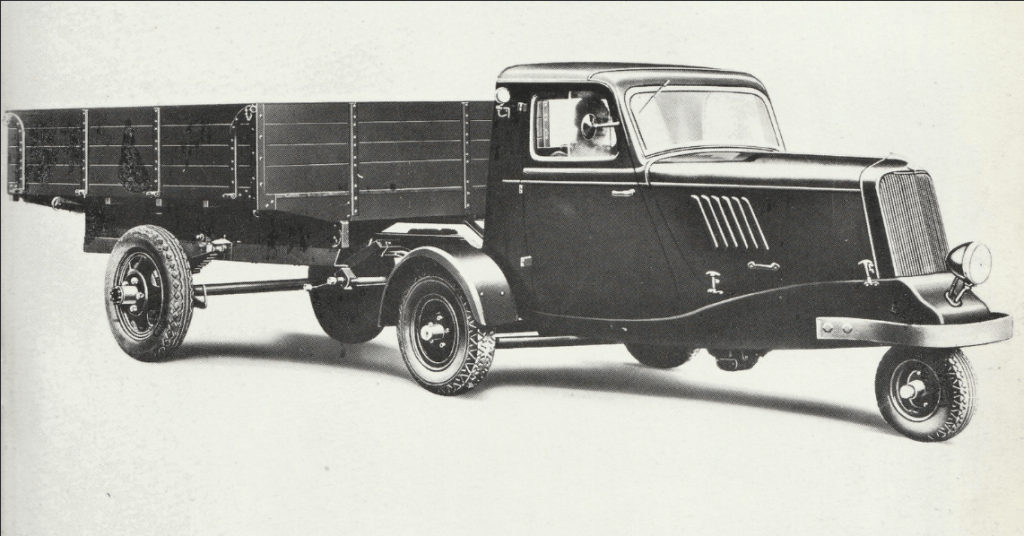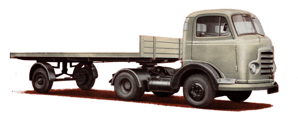 FAR, in France, built Scammell Mechanical Horses under licence; Known as “Le Cheval Mècnique” early versions were fitted with Citroen engines as used in the Traction Avant, and followed the design of Scammells Mechanical Horse. Later ones were built with FAR develops incorporating modern features such as a tilting cab and a braked front wheel! The 1938 Calberson livered version seen above is owned by the Association des Amis du Musee du Poids Lourd and was photographed during a visit by The Mechanical Horse Club in May 1986. A good collection of FAR related images can also be seen here.