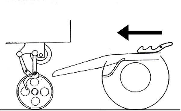 Under the beam holding the rollers a narrow twin legged frame (3) (with jockey wheels at its extremities)