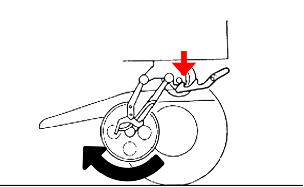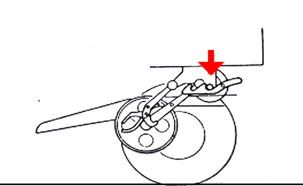Between the wheels is a S shaped striker (C) that acts on the Trailer undercarriage.